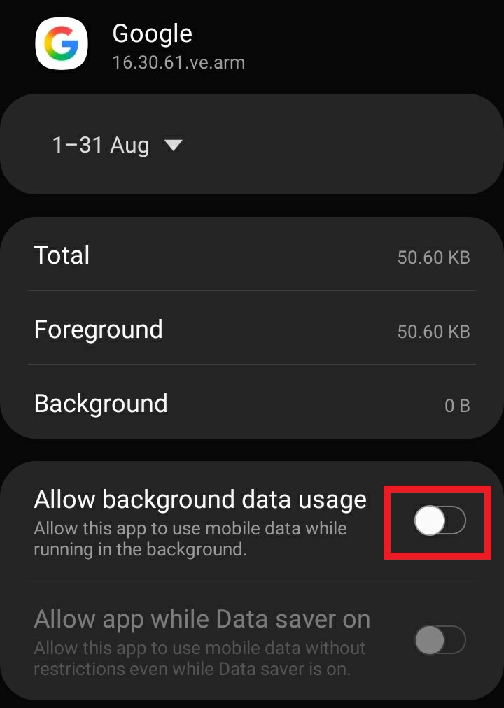 - Enable “Allow background data usage”.