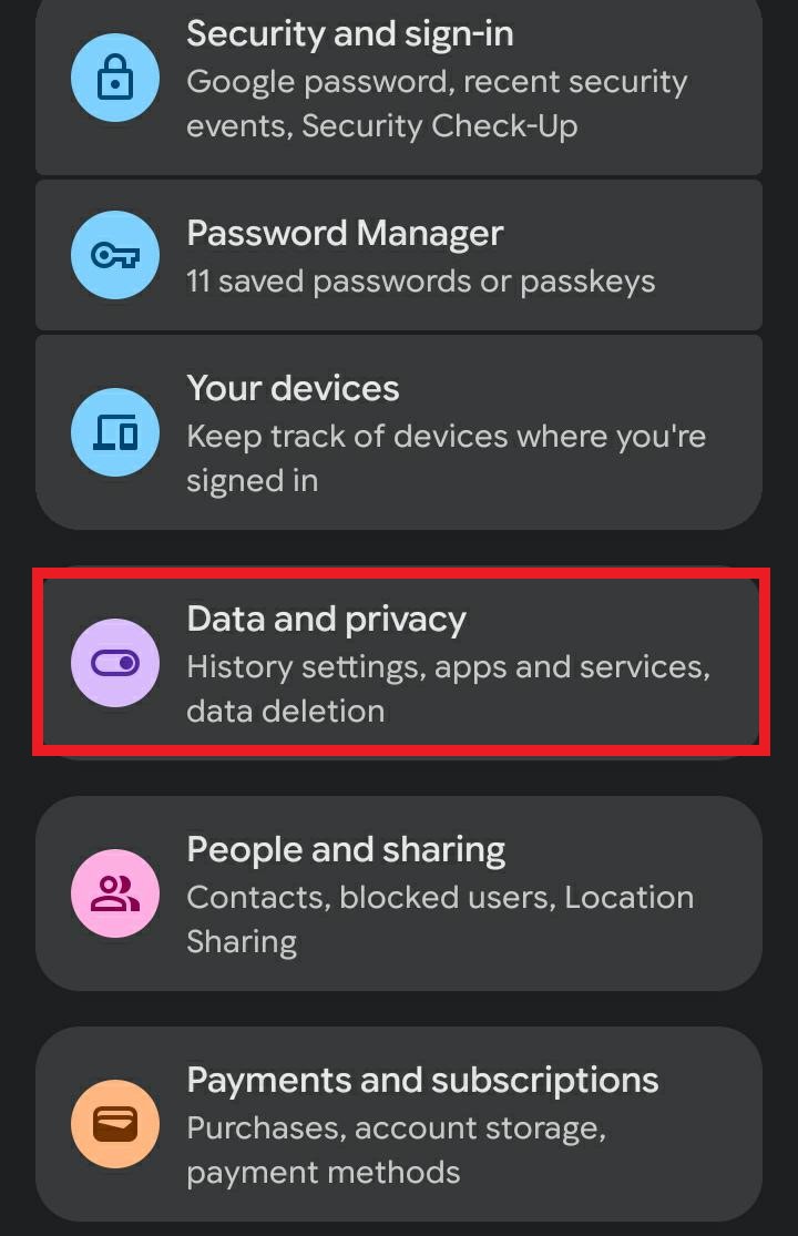 - Scroll down and tap the Data and privacy tab.