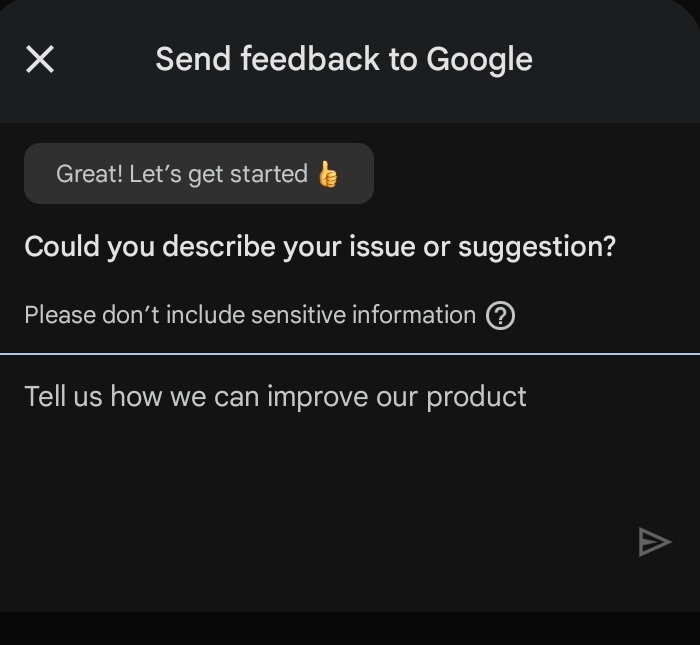 - Choose “Send Feedback”.