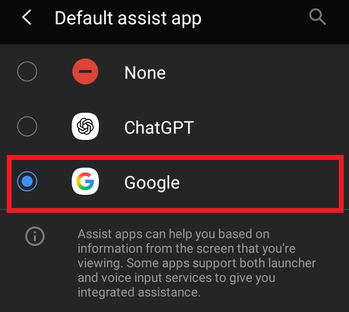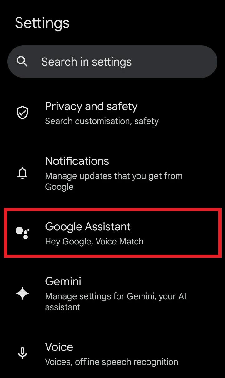 - Select Google Assistant.