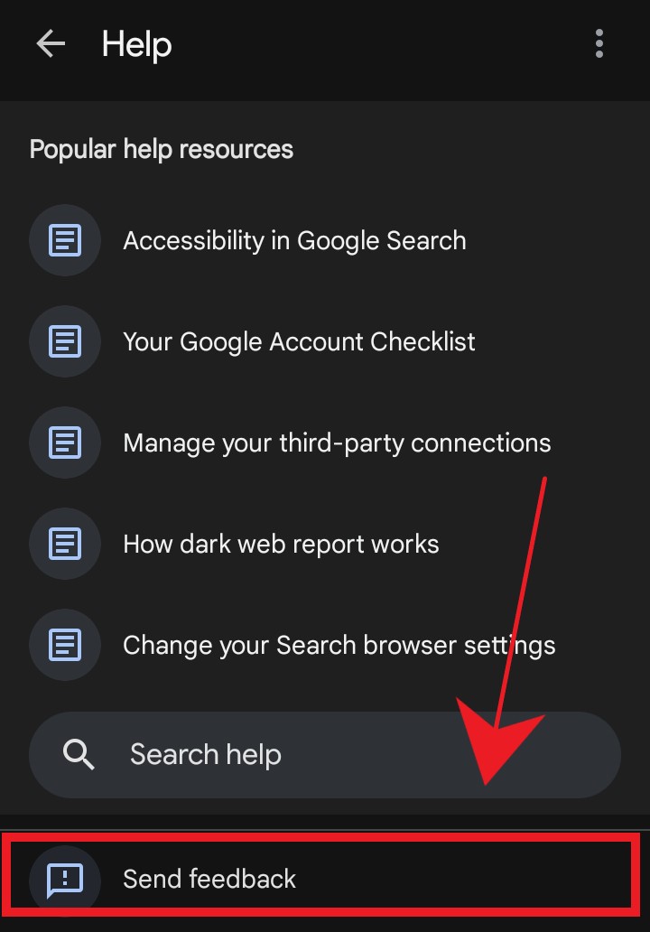 - Scroll down and select “Help and Feedback”.