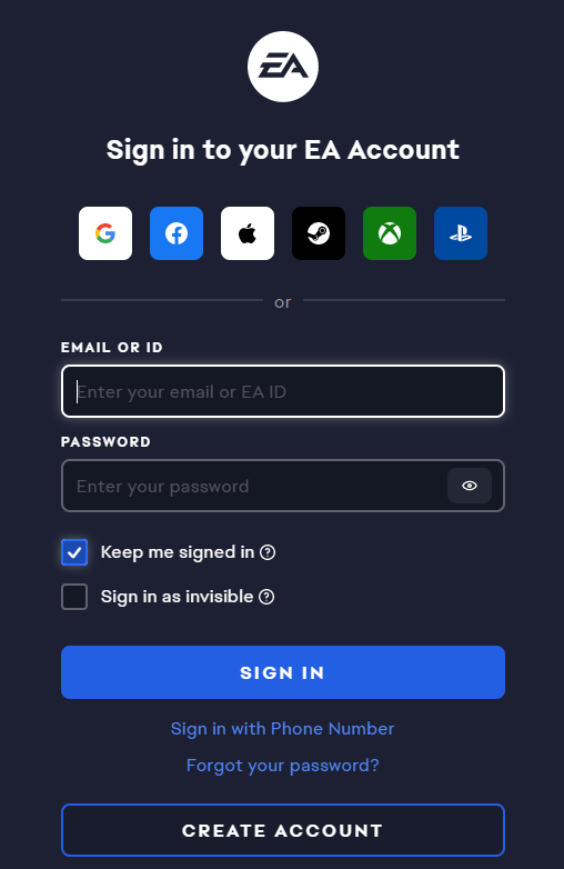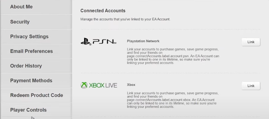 Console players must link their EA Account with either PlayStation Network or Xbox Live to gain access. Linking can also be done directly when launching the game for the first time.