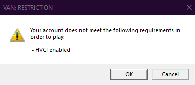 Fix: “VAN: RESTRICTION – HVCI Enabled” Error in Valorant