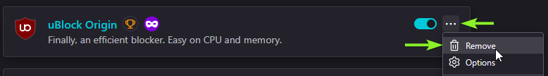 - Locate any ad-blocking or tracking-related extensions and click the three-dot menu beside them.