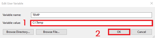 - Repeat the same process for TMP and set it to the same path.
