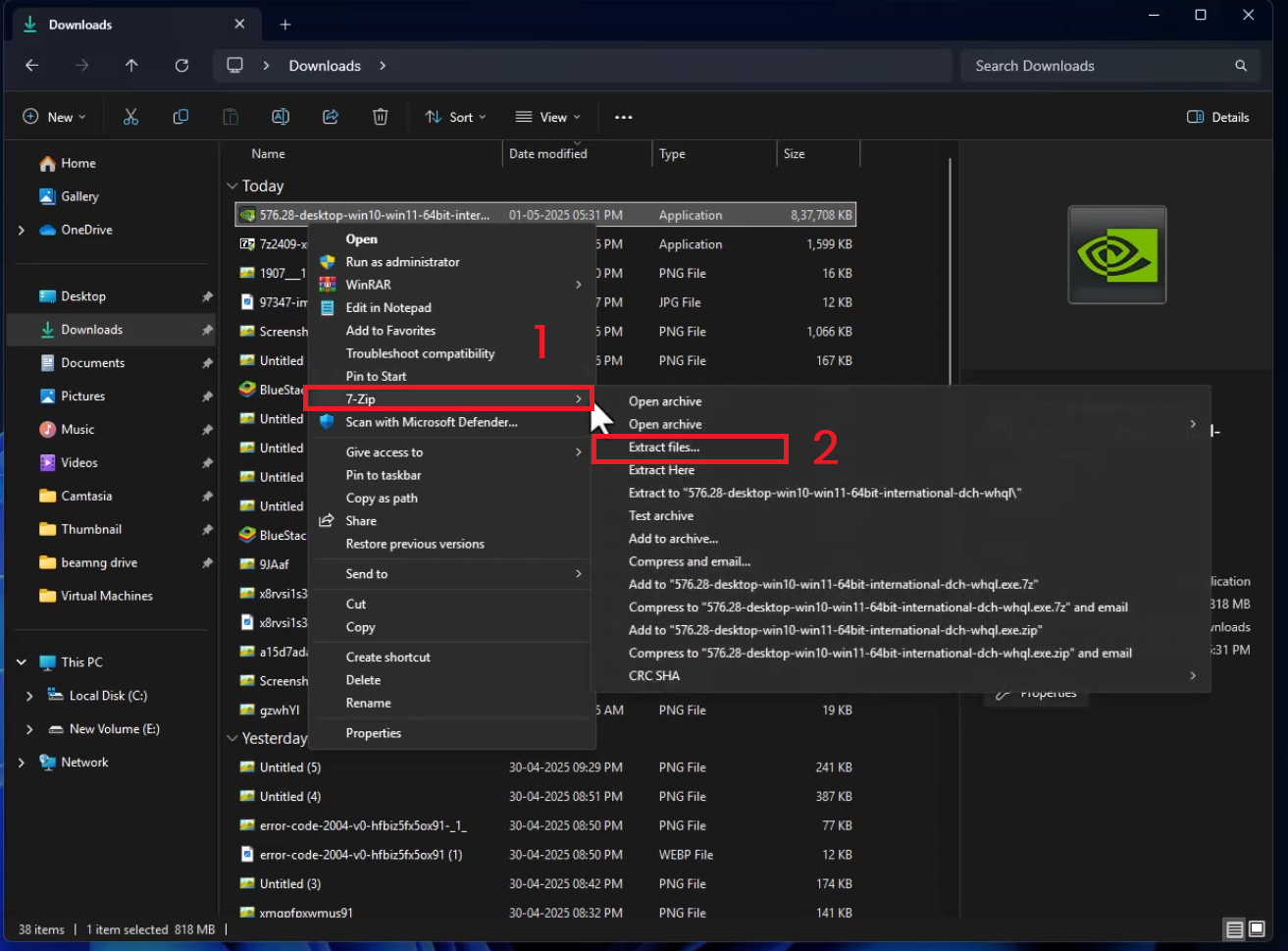 Fix: CRC Error When Installing NVIDIA Drivers (7-Zip Extraction Failed)