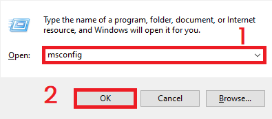 - Type “msconfig” and press Enter.
