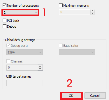 - Check the box next to “Number of processors”.