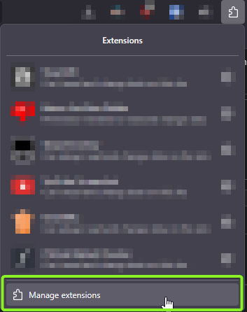 - Locate any ad-blocking or tracking-related extensions and click the three-dot menu beside them.