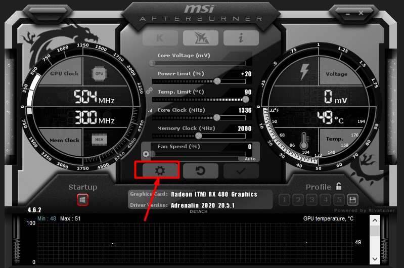 - If the sliders are grayed out, click the gear icon to open Afterburner’s settings.